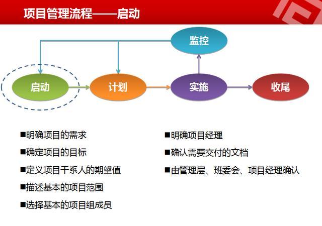 项目先后衔接的各个阶段的全体被称为项目管理流程。项目管理流程对于一个项目能否高效的执行起到事半功倍的效果。接下来我会利用36张的ppt(当然了这里我只用部分图片展示要不然就太多图片了),介绍项目管理的整体流程。