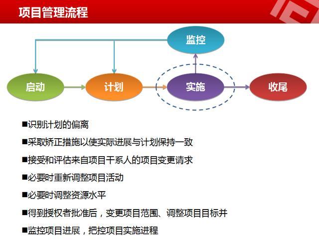 监控项目执行并进行整体变更的控制,及时解决中间存在的问题,并及时解决。项目实施的过程中为了防止出现变更,所以要监控,如项目中出现什么问题,及时进行解决,并且监控时间,以防止项目超出预算时间,那么预计的时间该怎么算,你这边可以借助项目管理软件,可以随时监控项目的全面进度,以及部分进度,以及部分的变更情况。