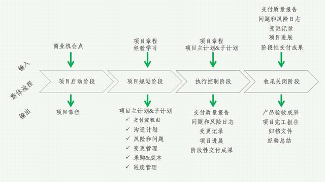 所以我们今天要谈的主要是项目每个阶段的交付成果,我们谈每个阶段的关键输入是什么,每个阶段的关键输出是什么,从这个交付流程图就能够一目了然。
