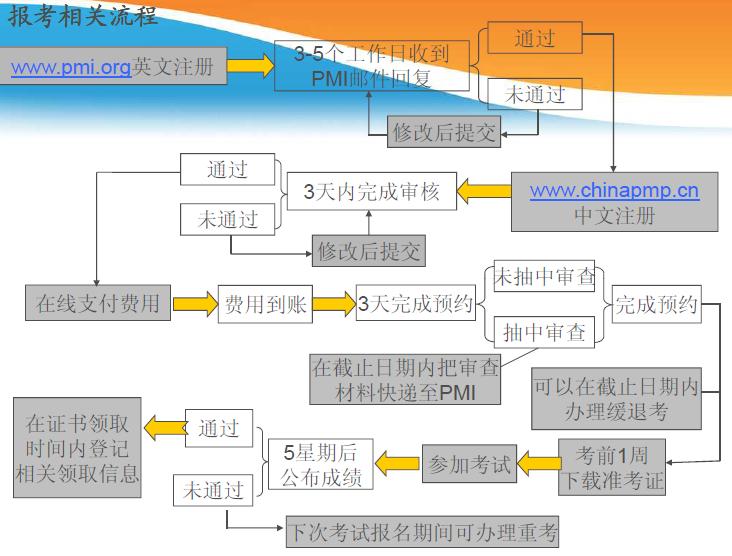 6、申请合格通知(如果考生的报名资料合格的话,在PMP考试前1-2周左右,PMI会将合格申请者的PMP认证考试资格信寄给PMI中国代表处,大陆各地考试报名点会通知考生);