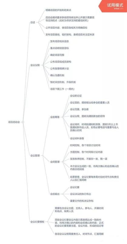 今天就给大家分享一张项目管理启动会的思维导图,虽然是根据项目管理的逻辑进行梳理,但也同样适用于每个工作的会议组织和会议管理以及会议后续的传递。
