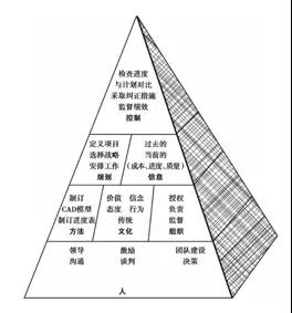 可以看出,人的因素是最底层的。很显然项目是人做的,如果一个项目经理不懂得处理人际关系,项目就可能出现问题,这是项目经理无法通过一个项目进度表、甘特图反馈出来的。作为一个项目经理,你必须要处理沟通、冲突、激励、领导力、决策、政治等等这一系列的问题。之所以这么说,其实管理本身就是在处理人的问题,如果你讨厌人事纠葛,那就需要重新思考你适合这样一份工作。