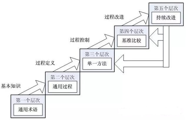 通常组织需要逐级提升自身的项目管理成熟度,很难一次性从较低阶段跨越到较高阶段,一般每个级别所处的周期都需要一到两年的时间,即组织可能需要五到十年才能达到从最低级到最高级蜕变的过程。