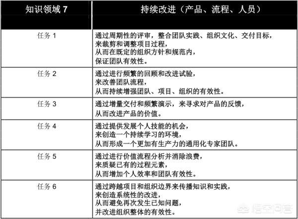知识领域7:持续改进(产品、流程、人员)(6项任务)