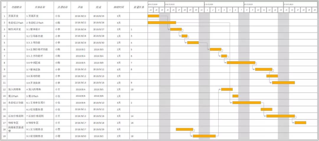 从这份计划中,我们可以看到,小勤对开发任务进行了详细地拆解,每个人的工作都很明确。你觉得很好了,对不对?