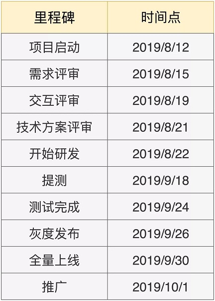 你可能会说,这也太简单了吧?实际上,在程序员自己管理的项目中,这种一句话式的计划是很常见的。这份计划规定了提测和上线时间,也算是有了基本的约定。