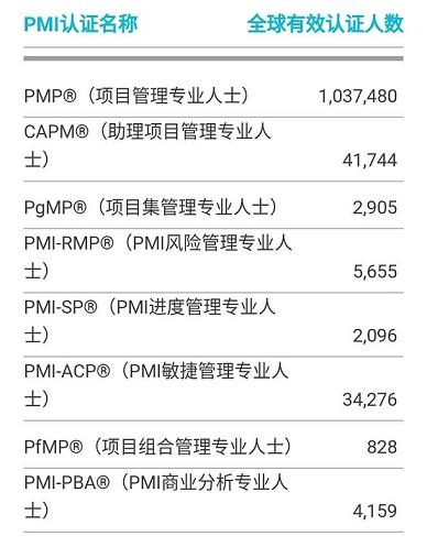截止2020年1月,PMI全球认证人士统计数据如下: