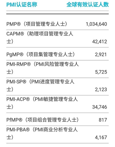 截止2020年3月,PMI全球认证人士统计数据如下: