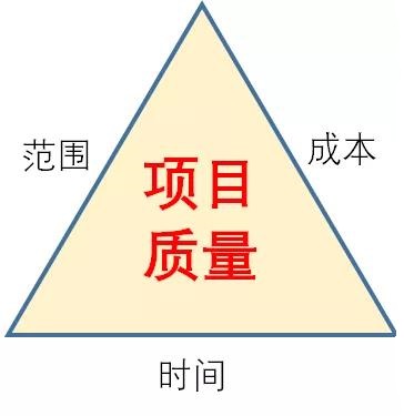 不过,我认为项目经理最应该关注的是范围、成本、时间与质量四者的关系,特别是范围、成本与时间三者之间的平衡关系,这个关系有个通俗的名字叫项目三角形。