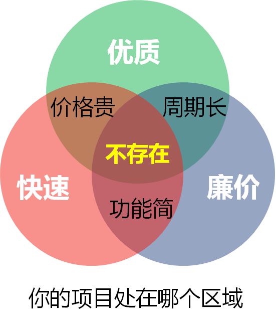 优质、快速、廉价,没有哪个项目经理可以将三个目标在同一个项目上全部实现。