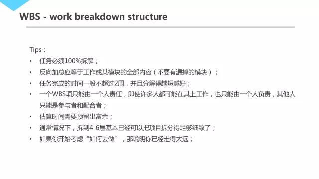 12、工作分解的方法论,涉及到很多细节,需要有足够的脑力来完成这一部分。这一部分也是重中之重。