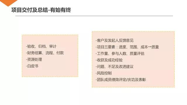 14、有很多人可能会忽视了总结。一个项目做完了就是做完了,没有内容整理存档和个人经验提升的意识。