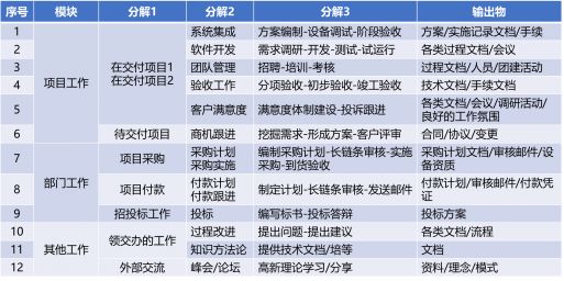 3)部门/公司侧:技术文档/方案/方法论、流程制度建设、跨职能部门沟通、项目案例等