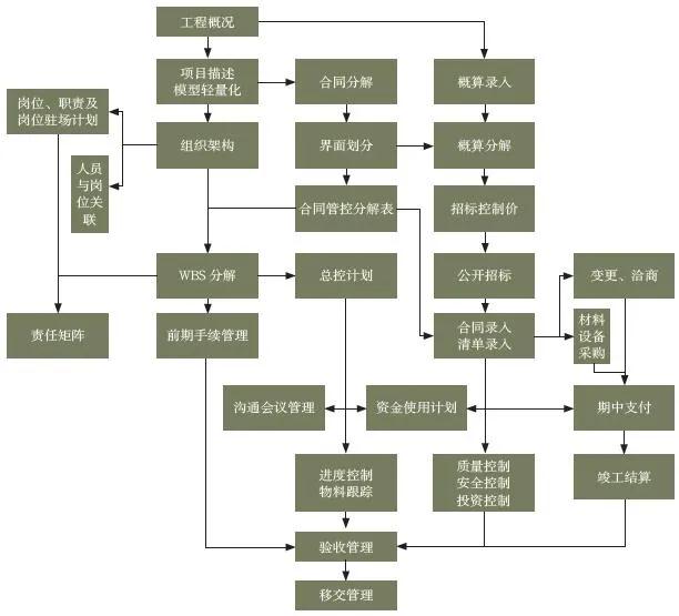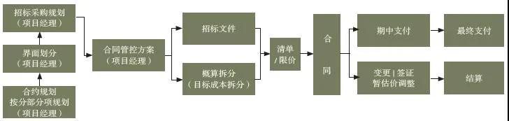 为有效进行成本管理,集团把概算值作为工程的目标控制值,根据项目的特点,将施工总分包界面划分工作从采购阶段前移到完成合约规划后编制。在此阶段,集团制定了详细的施工总分包界面划分表,并在协同办公平台上用文字加以描述。