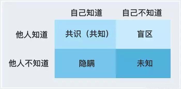 如何达成共识,这里面涉及到一个理论,是由两位大学教授首先研究出来的。两个人的名字,一位叫Joseph Luft,一位叫Harry Ingham,他们研究出来的理论,被称为“乔哈里窗”(Johari Window)。