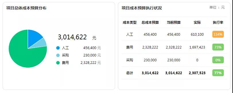 制定项目的资源预算、费用预算、采购预算、收益预算,其实是给了项目经理一个“标尺”,让其在后续的项目管理过程中以预算为参照,自觉控制成本、提高收益。而要想最大程度地发挥这个“标尺”作用,除了做好项目成本管理,我们还需要记录项目的实际花费,将项目预算与实际花费进行对比分析,项目经理可以实时统计、及时决策。