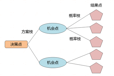 决策树分析的要素包括决策点(决策的出发点,可以有多个层级的决策点)、方案枝(决策的若干备选方案)、结点(每个方案枝在各种自然状态下的收益结果)、概率枝(每种自然状态对应的发生概率)及结果点组成。由决策点出发,从左到右根据需要决策的问题、可供选择的各种方案、各种方案的自然状态展现出决策树图。