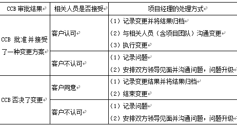 变更很可能需要额外的费用、资源和时间,因此应建立包括来自不同领域的人员在内的变更控制委员会(Change Control Board,CCB),以批准或否决变更。这个委员会的组成人员必须有相应的职位和权限,有能力在管理上做出承诺。
