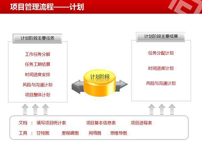 项目计划阶段:一但项目决定要做了,就要进入项目计划阶段,这个阶段要考虑的都是项目进行中的实际问题。项目计划包括(进度计划,风险计划,沟通计划)