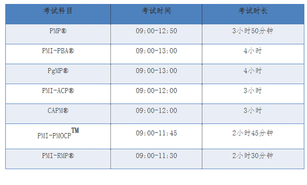 (1) 各考试科目对应的考试时间如下,请考生仔细了解。