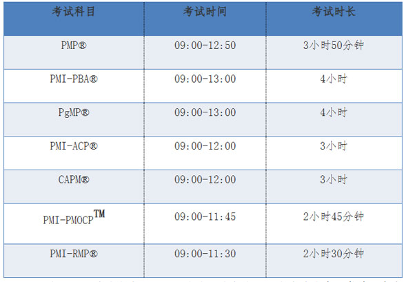 (1) 各考试科目对应的考试时间如下,请考生仔细了解。
