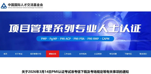现将2026年3月14日PMI认证考试准考信下载及考场规定等有关事项通知如下,请您认真阅读了解。